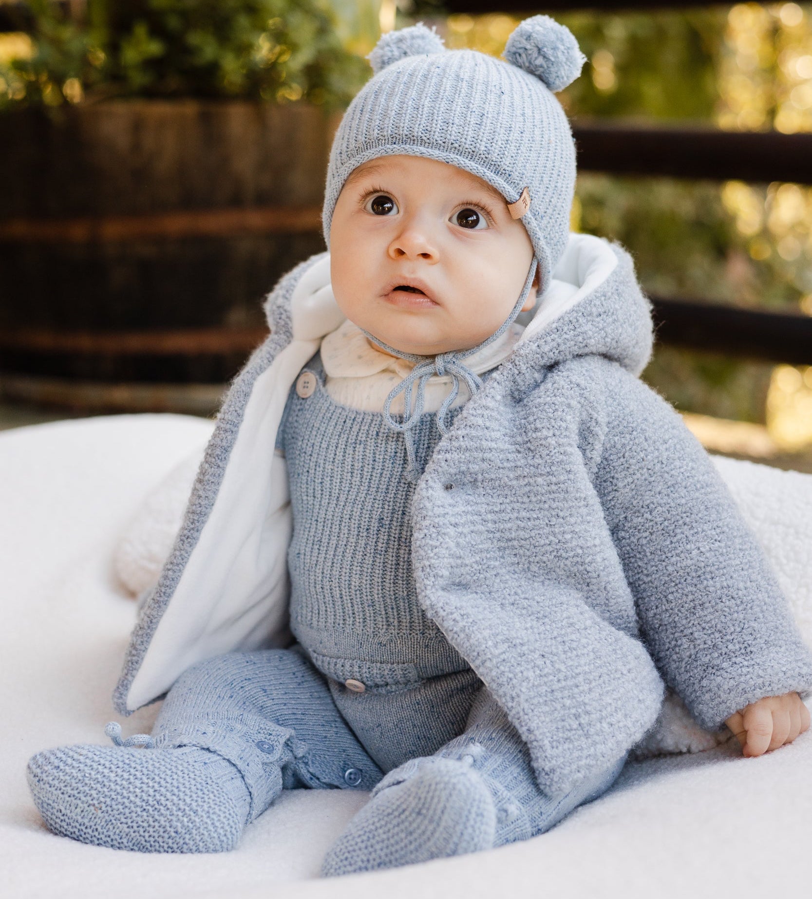 Knitted coat with hood